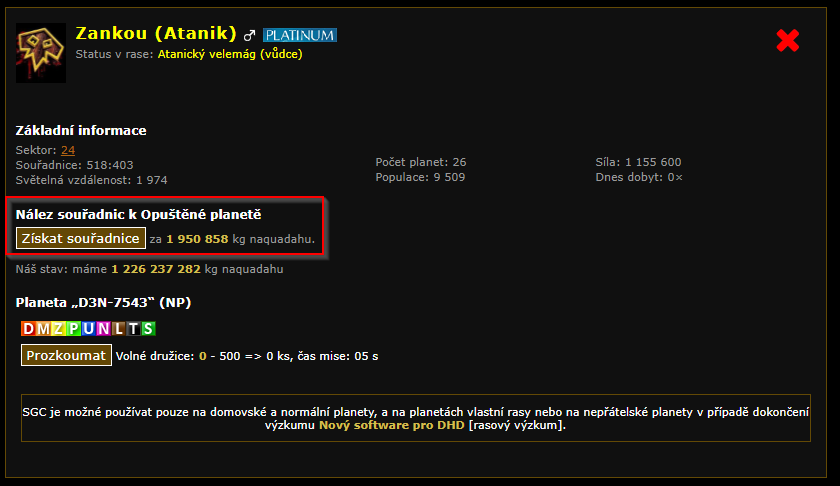 Osídlení planety stojí naquadah (naše herní měna, zkráceně naq), proto je před samotným osídlením potřeba udělat pár úkonů, abys cenu planety snížil na minimum: