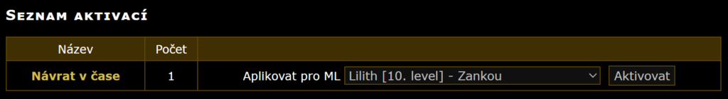 | Univerzálové | Přidá k základním statistikám +10 do útoků a obrany. Maximálně lze aktivovat 3 krát. Možnost nákupu je umožněna jednou za 1 den. |